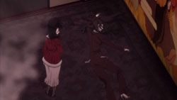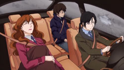 First off, Yayoi sure seems to recover quickly from her injuries as she looked no worse for wear than when she originally came. Lin on the other hand is ridiculously strong or something as she was able to break Benika’s driver side window with her bare hand as the car sped right past her. There was a fair bit of censorship when Benika got stabbed by Ryuuji and when Shinkurou went berserk on him in return, as no blood was actually animated. This actually made things look somewhat odd though as the sound of blood gushing out rapidly was pretty audible in both cases. Given how much blood supposedly came out, it made me wonder how Benika didn’t bleed to death while everyone continued talking. As for Shinkurou’s Houzuki technique, boy did he look deranged when he’s using it. By the blank look in his eyes, it’s almost like he was possessed and his body was acting spontaneously on its own.