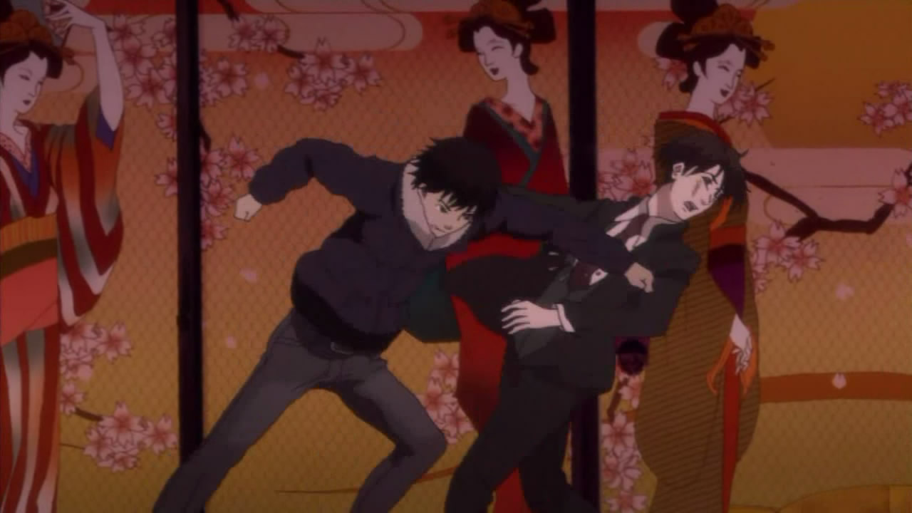 The quick defeat of Lin and Ryuji is also a metaphor for tradition vs the shock of the new – when Shinkuro and Yayoi choose to cut themselves loose from traditional fighting waza, Lin and Ryuji are no match; their tradition-bound style can’t compensate, and they quickly collapse.