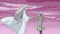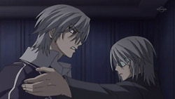 The smell of Shizuka’s blood soon permeates through the school, and it causes Ichiru to leave the fight with Zero so that he can go find her. Zero still thinks that he has to kill Shizuka, but Yuuki stops him and questions what he’ll do after that – she’s worried that he plans kill himself after everything is over. After hearing that she just doesn’t want him to die, Zero hugs Yuuki and expresses how glad he is that she’s safe. He also admits that, although he had thought about being dying alongside Shizuka, he doesn’t feel that way anymore, and he promises to return. Meanwhile, Ichiru discovers Shizuka’s dead body.