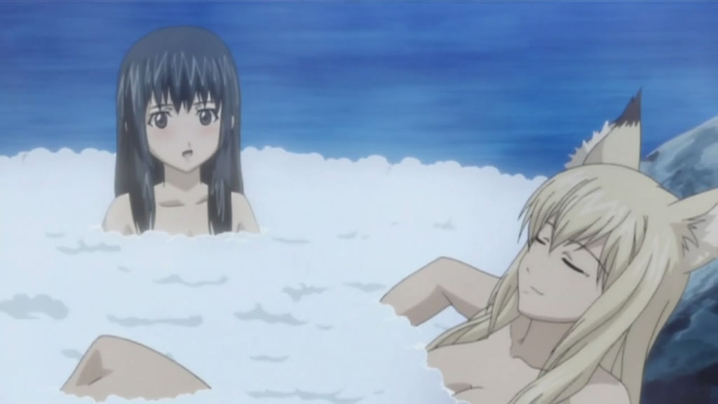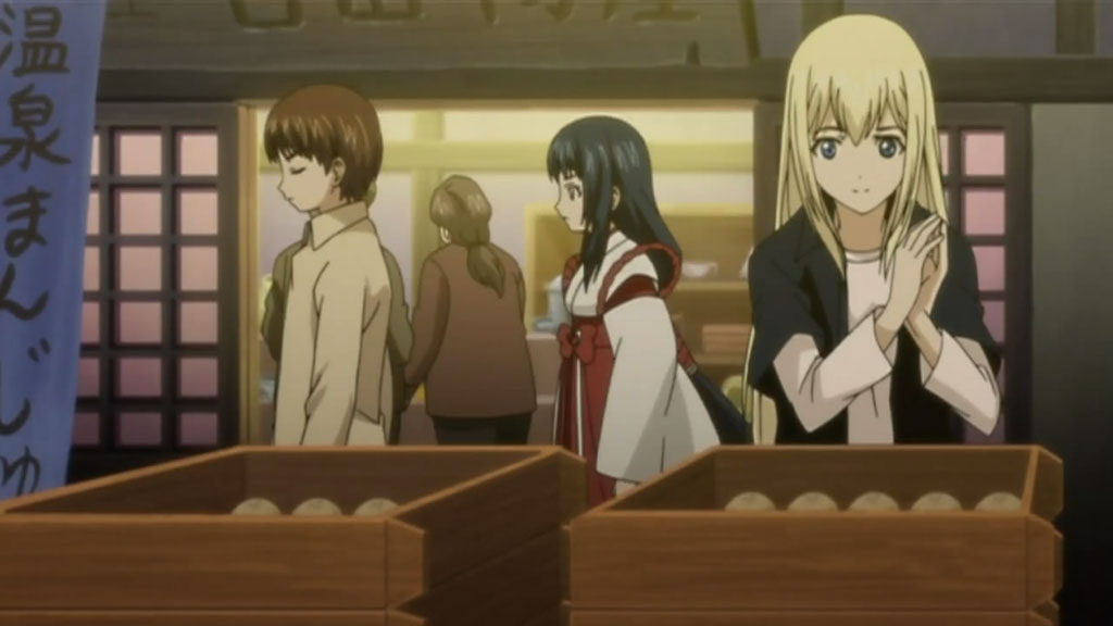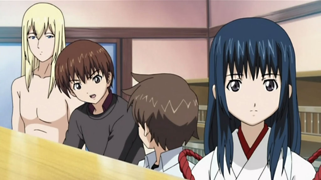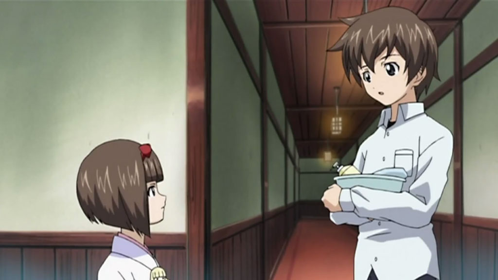 Despite being a hot spring episode, there wasn’t much fan-service until the very end, but only if you can even consider that fan-service. While the episode itself was pretty entertaining when I watched it (mainly because of Kuugen’s antics such as crashing through a door while going for the birdie), in retrospect, not a lot happened. Despite being a spirit, the little girl didn’t really cause much of a problem and everything was resolved fairly quickly. The focus of the episode seemed to be more of Oobaba-sama’s lack of trust in Kuugen’s ability to protect Noboru and Tooru though, which did seem to be resolved at the end.