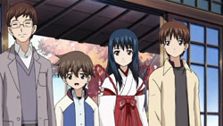 After winning a trip to a hot spring from a lottery draw, Kuugen, Kou, and the rest of the Takagamis make the trip out there, where they run into Noboru and Tooru’s grandmother, Oobaba-sama, and uncle, Midzuchi Tatsuhiko. Later, Kuugen (male), Noboru, and Tooru go off to take bath, but Noboru makes everyone hold off when Kou comes by offering to wash their backs. As Tooru leaves in a hurry, he accidentally leaves behind his protective bracelet and then runs into a small girl asking him to play with her. After giving the girl his name and promising to play with her later, Tooru sticks around at the inn while everyone else leaves to check out the surrounding area.