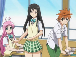 I so want to see LalaxRito. Its ok to have the triangle with Haruka but eventually they need to find her another love interest or something so Lala and Rito can hook up. Also anyone else think that the blond assassin (forget her name) seems to be very similar in voice and character to other naimes? She very similar to Eve (Black Cat), the lead in Monster Princess, Sakura in Da Capo II, I love her characteras well.