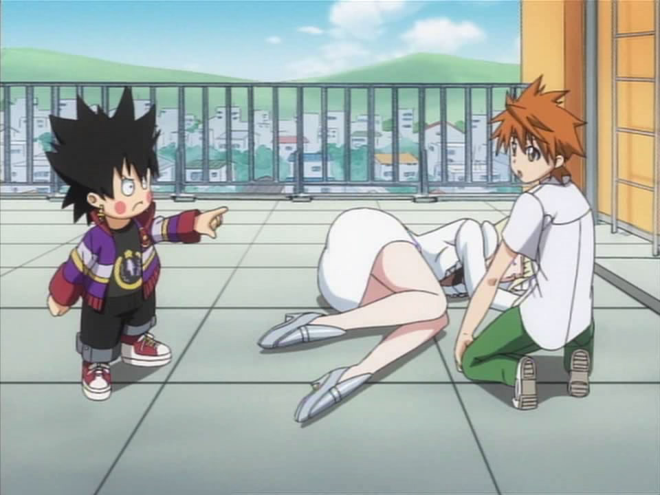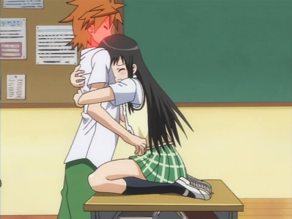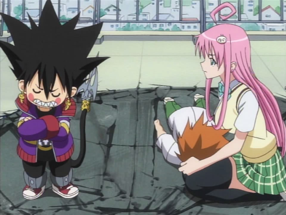 Later on, Rito is taking out the garbage with Haruna and is almost able to confess his feelings for her, but is suddenly called to the rooftop by Mikado-sensei. There, Rito is left with a woman, who’s been watching/photographing all of his antics for the day and taken an interest in him. Just as Rito’s about to get kissed, Lala’s father appears and declares that he’s failed the test. While Rito first thinks Gid is some lost kid or Lala’s younger brother, he soon finds out otherwise and is about to get killed along with the rest of the Earth for his half-hearted attitude towards Lala. Thinking of all his friends, Rito tries to stop Gid, but Lala suddenly shows up and tells her father not to hurt him. In tears, Lala declares that Rito’s the person that she loves, so Gid decides to give Rito some time to become a man befitting of Lala—the greatest man in the universe.