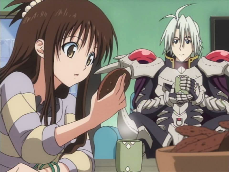 After conquering a planet quicker than expected, Gid Lucione Deviluke informs Zastin that he’s going to pay a visit to Lala and meet her fiance. While he’s supposed to keep his mouth shut about this, Zastin decides to pass on this information to Rito, so that he can behave admirably under the watchful eye of the supreme ruler of the universe. With that thought in his mind, Rito feels that things will be okay if he conveys his honest feelings for Lala, but is unsure exactly what those are when he’s reminded of Haruna. To make things worse, things at school don’t put Rito in a good light as he gets wrapped up in another Saki vs Lala dispute (where Yui falls victim to some bondage), and run-ins with both Run and Konjiki no Yami.