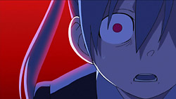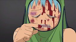 – A foreshadowing sequence with Chrona slashing some guys up.