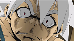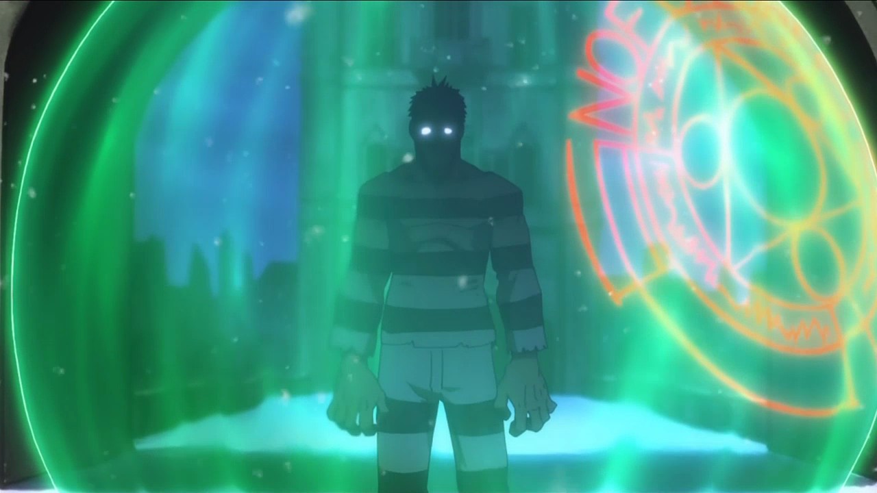 Elsewhere, Eruka brings the man with the demon eye to Medusa and is shocked to learn that Medusa only intends to remove one snake from Eruka’s body in exchange for every one task she does. Ignoring Eruka, the man with the demon eye talks to Medusa, and when he realizes that he has no official name anymore, he decides to have her call him Free. He also wants to thank her for freeing him, so she asks him to destroy a certain Meister/Weapon pair. Free gladly accepts, and sometime later, he confronts his targets on the Tower Bridge in London. Black*Star and Tsubaki are there with Maka and Soul, and since Black*Star wants to demonstrate Tsubaki’s youtou (phantom blade) mode, he goes first. He thus powers up and charges forward with great power, but he loses it all moments before reaching Free because he still can’t handle it for longer than ten seconds. Free doesn’t get a chance to turn his attention to Maka though because Soul immediately stabs him in the chest. Unfortunately for Soul, this has no effect on Free since he’s immortal, and Free then changes into true form: a werewolf. Maka tries to face Free by using Soul in his scythe form, however she quickly finds that holding Soul burns her hands because their soul wavelengths don’t match anymore.