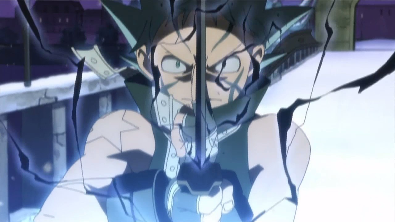 Well this fight with Free was interesting in the somewhat disturbing and anticlimactic sort of ways. I say disturbing because it was weird seeing Maka be so aggressive and determined that she’s banging her head against her weapon in an effort to force it through. It’s the kind of desperation that isn’t very pretty to watch (and I’m sure that’s part of the point). What’s worrisome is that Maka now has some black blood in her too, and that symbolizes to me that her quest for more power will take a turn down the dark side. As for it being anticlimactic, I was hoping for a better, less comical conclusion to Free battle after all that fighting, but I realize that it’s hard to do it in a satisfactory way since he’s immortal and all. I assume he’ll be back too at some point because he’s too good of a character to just throw away. What I really want to see now though is Black*Star use Tsubaki’s youtou mode in an actual fight since they keep teasing about it, but haven’t shown much. Perhaps he’ll have it down by the next time they face Free, assuming they do. Next week however appears to take place mostly at Shibusen and will involve a lot of blood.