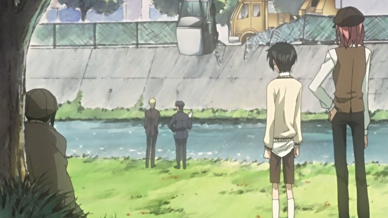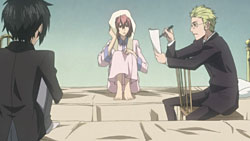 With Sirius Hashiba, leader of the Kouga and director of Alya Academy, bedridden with some incurable disease, his student council reassures him that they’ll take care of the Nabari world matters. Back in Banten, Hanabusa is going away for a few days for paleontology work, while Thobari and the others make their way to Kouga as per the invitation they received from Kotarou. On their way, Thobari says he’ll try to negotiate for Kouga’s kinjutsusho, which reminds Raimei of how she said she’d help Miharu get Banten’s kinjutsusho. As for Miharu and others, they’re watching their car get towed out of the water while waiting for a replacement ride, so Raikou tells Miharu a bit about the Kouga’s powerful forbidden technique, “Daya” 「蛇薬」 (roughly translated to “Serpent Drug”).