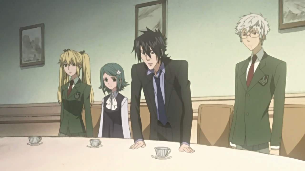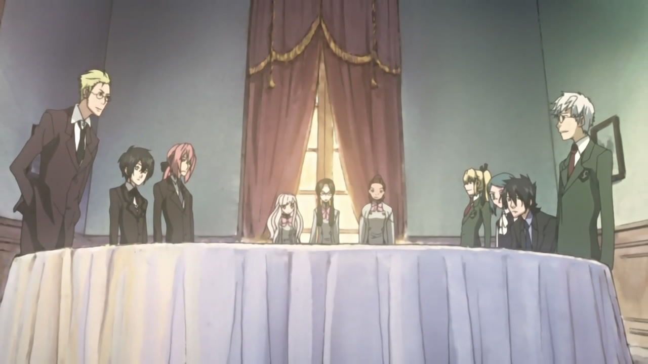 After adjourning their first meeting, Thobari demands to know what the hell Miharu is thinking, but gets taken away before Miharu can say anything. Meeting with Sirius again, the student council girls fill him in on the meeting and how nothing has been resolved yet, when Kannuki-sensei comes in saying he wants to elect an official successor so the clan doesn’t go into ruin along with him. Kannuki suggests that the teaching faculty take care of the election, to which Shijima says he simply wants to take over, being the current vice-director and all. Their accusations stop though, as Shijima notices that Yukimi and Raikou are eavesdropping outside, but let them go despite their lame excuse.