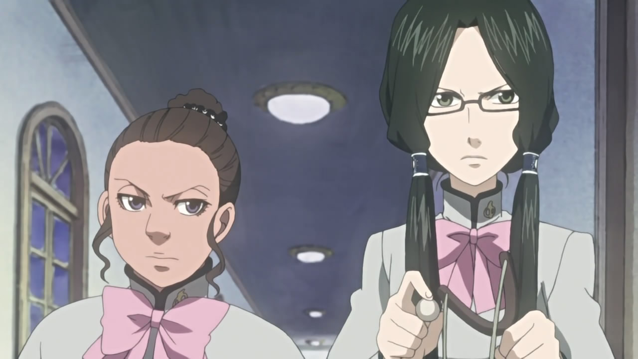 As for Kouga’s leader, Sirius Hashiba, aside from being bedridden with some incurable disease, he seems more concerned about the well-being of his school/clan than the ongoing struggle for the Shinrabanshou in the Nabari world. This reminds me of the impression Yae originally gave, but seeing as there are Kouga ninjas who have ill thoughts towards Sirius, I doubt he has some huge ulterior motive in mind. I can’t say the same for his three student council ninjas though, i.e. Shijima, Subaru, and Catalina, who are played by Shindou Kei, Kawakami Tomoko, and Nabatame Hitomi respectively—three well-renowned female seiyuus. The girls’ intentions seem to be earnest, as Kannuki-sensei is the one trying to take over the Kouga clan and obtain the “Daya” 「蛇薬」 forbidden technique for himself; however, like Yukimi and Raikou already realized, the Kouga must know that they’re after the forbidden scrolls, so there must be some reason they’ve decided to reveal their village’s location and invited both the Kairoushuu and Fuuma/Banten here. Naturally, this means that Shijima and the others also have something else in mind, but I, much like all the ninjas invited to Kouga, am still wondering what that something is.
