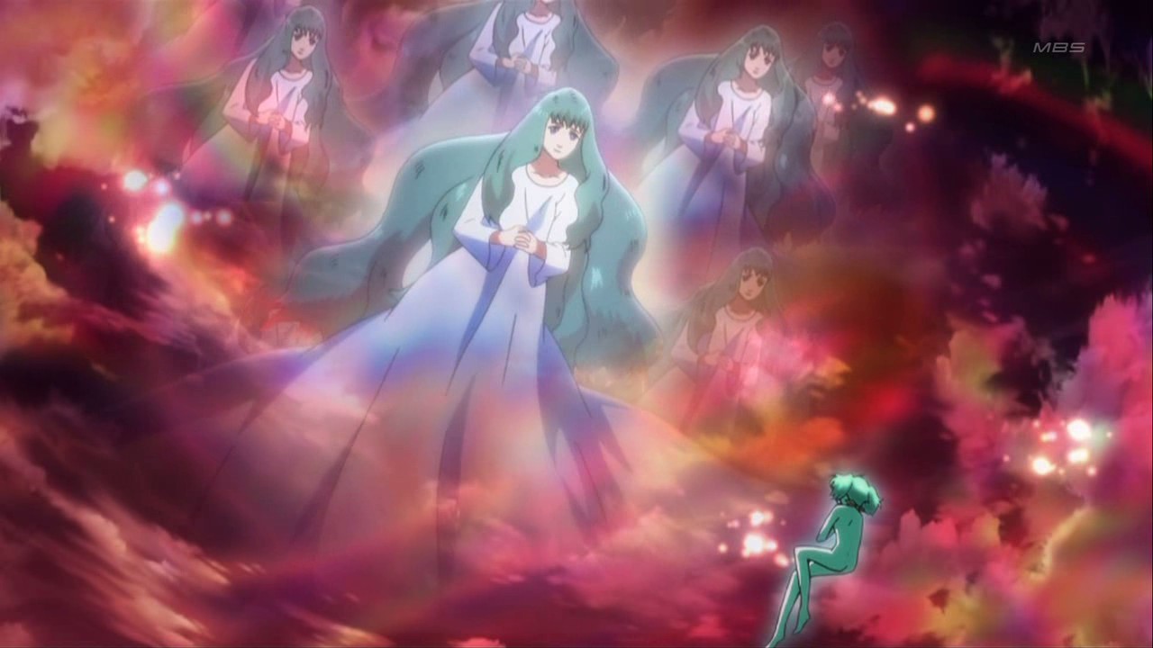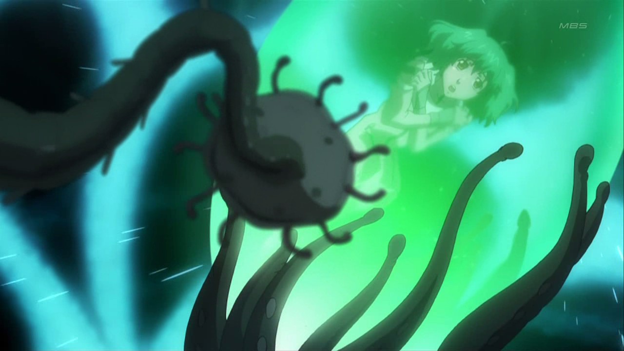 As for Ranka, the pieces are starting to come together about her connection with the Vajra: she appears to have some sort of Vajra virus inside of her, and the Vajra showed her a vision of someone who looked to be her mother (Ranshe Mei was once again listed in the credits and the episode is titled “Mother’s Lullaby”). Since Grace also refers to Ranka as the Little Queen, does that make her mother the big queen? Either way, it seems to me that they’re setting up the Vajra to be more than just the bad guys since Ranka clearly sympathizes with them and wants to stop the killing on both sides. It was also a little weird to see the Frontier/human side be the aggressors for once with their reactive/nuclear weapons, and it makes me think that we’re moving towards a point where neither side will be all good or all evil. Heck, I wouldn’t be surprised if Ranka joins the Vajra on her own volition at some point in the future. If we need a real villain, then I bet it’ll end up being Grace or whatever organization she’s working for.
