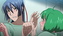 And please, would somebody tell me why the HOT short-haired chicks are always getting the shaft nowadays?! (Points to the red-head from Pixy Squad) They either die or they’re so far into the background that they might as well be white noise! That and it was NENE who got tagged by Alto on his graduation exercise.