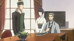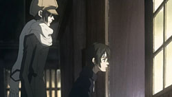 After feigning panic about the Daya, Kotarou comments on how the remaining Banten scroll is the most troublesome and how they’ll snatch everything from Hattori once he’s gathered them all. Meanwhile, Kumohira, Kouichi, and Raimei discuss how Miharu won’t return to Banten. At the same time, Kouichi explains how he’s an immortal being created by a previous Shinrabanshou host, much like Shijima, whose true form is Shiratama. He adds that he’s been in search of the current host so that he can be released from his endless existence, much like he tried ten years ago. Only knowing himself as Aizawa Kouichi now, he says he’s waiting for the revival of the Shinrabanshou and has also considered delivering the Banten Engetsurin to Miharu. After reiterating how Kumohira is firm in his resolve of preventing the Shinrabanshou from being used, Kouichi tries to demonstrate his immortality by letting himself fall off a cliff, but is caught by Kumohira and Raimei.