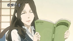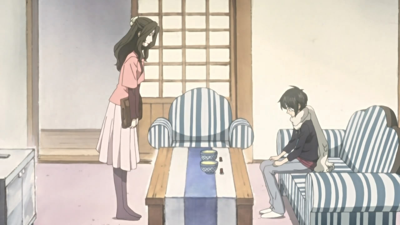 On the Shinkansen, Miharu and Yoite decide to see if they can get ahold of the Banten scroll through Hana even though she’s a surface world person. During this time, Yukimi is informed that Miharu and Yoite are gone by his sister, who also wonders if he’ll be okay getting the Engetsurin on his own. As for Kumohira and the others, they’ve disembarked from their ferry and Raimei has gone home first. At Kumohira’s house, Hana overhears some noises outside thinking it’s Thobari, but welcome in Miharu and Yoite instead. She then offers them food, thinking they’re waiting for Kumohira’s return, which causes Yoite to wonder what Miharu has in mind. Being as direct as possible, Miharu asks Hana if she’s heard of the Engetsurin, but she claims she hasn’t. Yoite doubts her claim though since she lives with Kumohira, but Hana explains that they have an implicit rule in their house not to talk about those things. Yoite then questions why she met with them then, but she says it’s simply because guests are important to her, and it’s sad if no one comes by to visit.