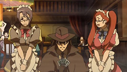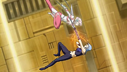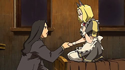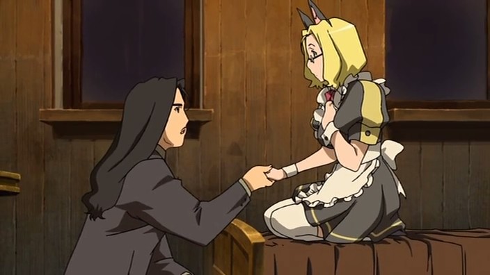 Interesting, I just watched the first episode of S.ifr again and I noticed a bit of trivia from the production that may seem cute to Otome fans: Rena saves both Blan and Nina from a fall off a hotel balcony many stories high. Except, the Nina of this series is a cat whose ears are shaped like Nina’s and Chun Mei’s (in Hime) trademark bunched hairstyle. Both Nina from the first two Otome series and Blan from this third Otome series are voiced by Koshuimizu Ami.
