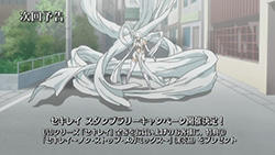 Last is No.104 Haihane, the Blue Sekirei of the Disciplinary Force, who’s played by Saiga Mitsuki (Yoite in Nabari no Ou) which I briefly mentioned last week. Since they’ve hinted at the fact that lower number Sekirei (particularly single digit ones) are to be feared, I wonder where Haihane ranks amongst everyone being No.104. She (he?) looks powerful enough and I get the feeling that the later Sekirei are really powerful as well; however, that has yet to be confirmed until Shiina (No.107) and Kusano (No.108) show us exactly what they can do.