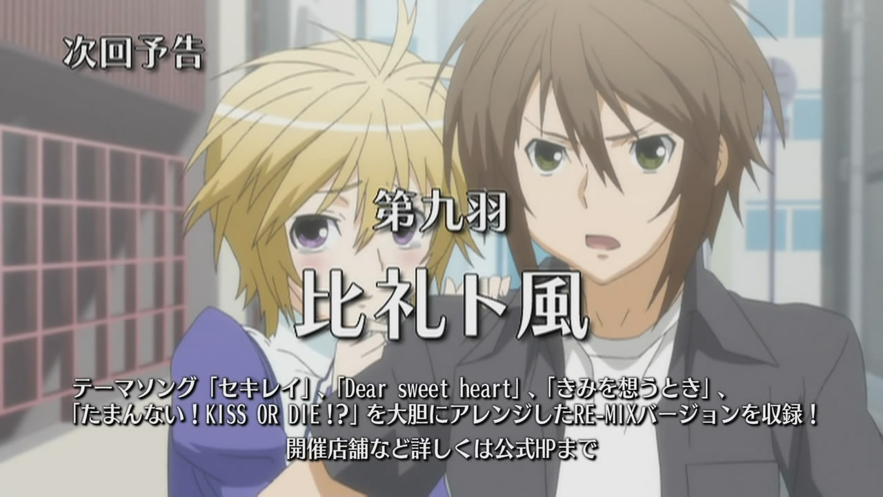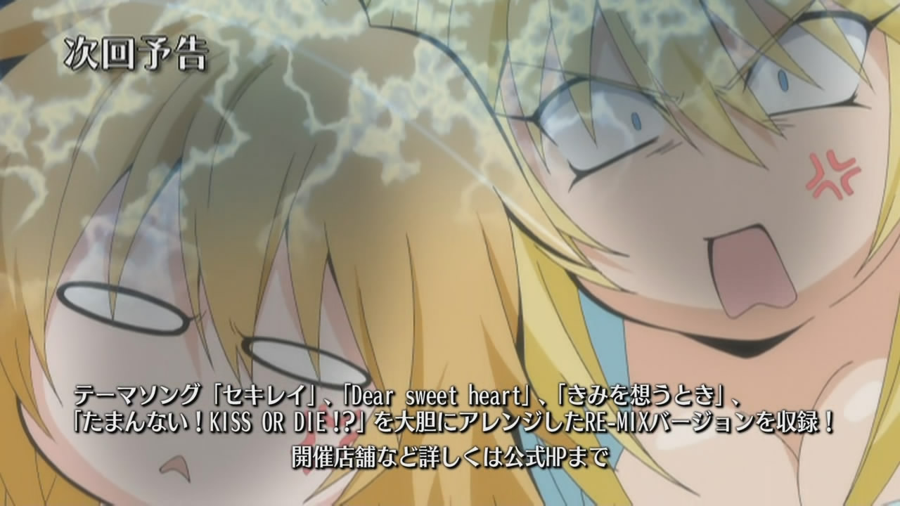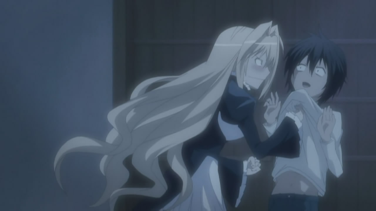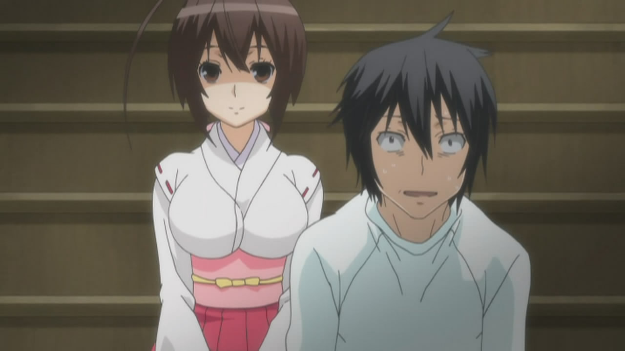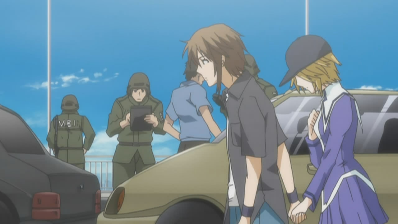 Other than Chiho, we were introduced to a new Ashikabi/Sekirei pairing in the form of Shigi Haruka and No.95 Kuno, the former of which is supposedly a school dropout. Haruka is played by Okamoto Nobuhiko (Morimiya Yorito in sola, Kanzato Shin in PERSONA -trinity soul-, Meguro Gau in Nabari no Ou), whereas Kuno is played by the less well-known Akesaka Satomi. Kuno’s screaming appears to be her special ability, which Haruka aptly refers to as “The Screaming Gun of Lament” 「絶叫のガン泣き」, despite how much she dislikes that name.