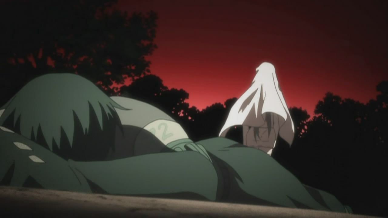 While they continue to hide her identity in the credits, they’ve made it obvious enough now that Uzume is the Hire (比礼) Sekirei. (Hire is a long piece of cloth/silk that drapes over one’s shoulders all the way to the feet in traditional Japanese attire.) We were also introduced to four new characters this time around, including Uzume’s bedridden Ashikaba, Chiho, whose seiyuu isn’t listed in the credits. The reason for this is undoubtedly because she’s played by one of the existing seiyuus, but I can’t quite put my finger on who it is, even though I’m able to eliminate some of the possibilities. Anyway, the fact that she’s double-casted makes me feel that she might not live long in the series, especially with Higa Izumi and his glasses subordinate Kakizaki extorting Uzume to do their dirty work.