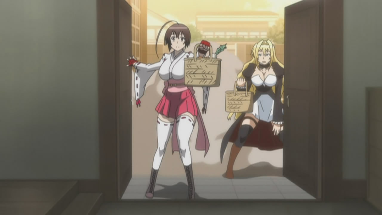After Musubi and Tsukiumi return from their grocery shopping battle (which Musubi wins), Minato and Matsu hold a secret meeting to tell them not to stand out too much with this dangerous Sekirei around, but they get fired up about fighting a strong enemy and upholding the Sekirei fighting rules instead, with Ku following suit. Minato expresses that he’s just worried about them though, which causes Tsukiumi to confirm his concern later on. Tsukiumi tells him there’s nothing to worry about though since she’s the greatest, making Minato realize how beautiful she is and how safe he feels around her, much like Musubi. Upon leaving the room though, Minato finds Musubi just outside and panics out of guilt, much to Matsu’s amusement.