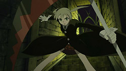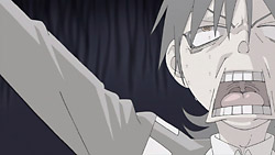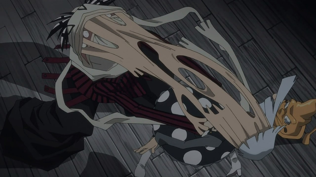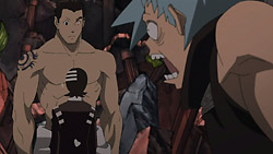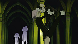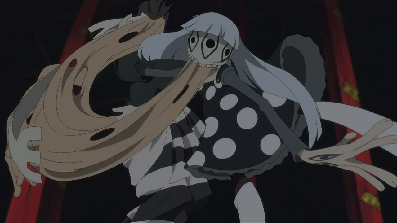 Well the Kid and Black*Star vs. Free fight was cool at first, but a bit of a letdown once they realized that Free wasn’t actually there. Heck, I don’t even consider it a real fight. I suspect though that we won’t get to see an actual fight between them because the Free and Eruka will likely succeed in awakening the Kishin, and that would give Kid and Black*Star bigger problems to deal with. Fortunately, the BONES team did a good job with the tension in the last segment of the episode and how creepy it was (especially with all the ripping off of faces). It’ll be interesting to see what kind of chaos the Kishin can create if he’s successfully awakened, and who’ll be able to stop him. Speaking of which, shouldn’t the hour limit be close to over by now? I think it’d be fun to see Shinigami-sama save the day, though given that the focus is on Maka, Black*Star, and Kid, I doubt that’ll end up happening. The preview, however, has no hints about what happens in that regard and shows mainly Stein and Medusa duking it out again.