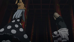 Free and Eruka regain control of themselves a moment later and realize that it was all an illusion, but at the same time, Eruka had almost driven a nail through her own neck,and Free was in the process of cutting off his own head. This is the Kishin’s madness at work, and they’re very close to the bag holding Ashura.
