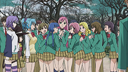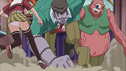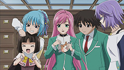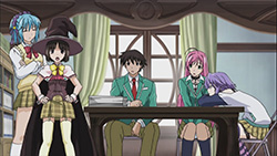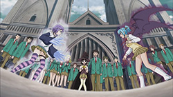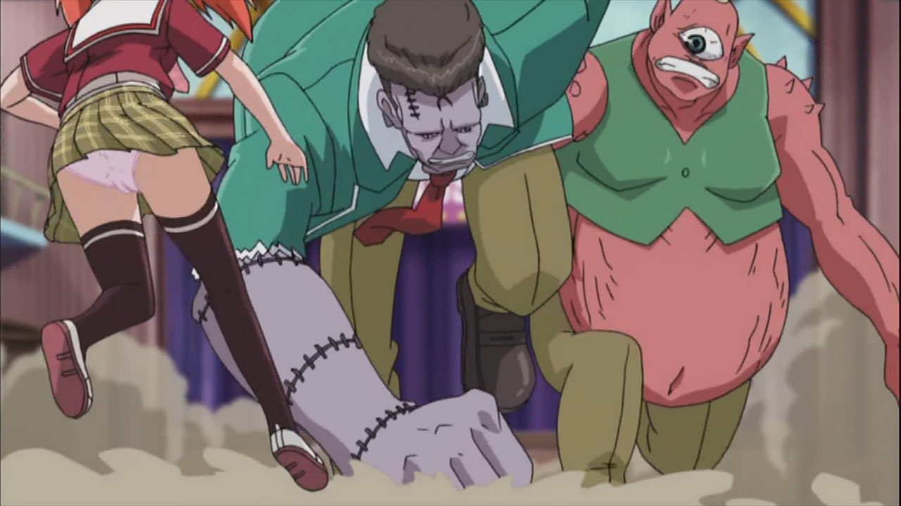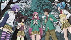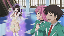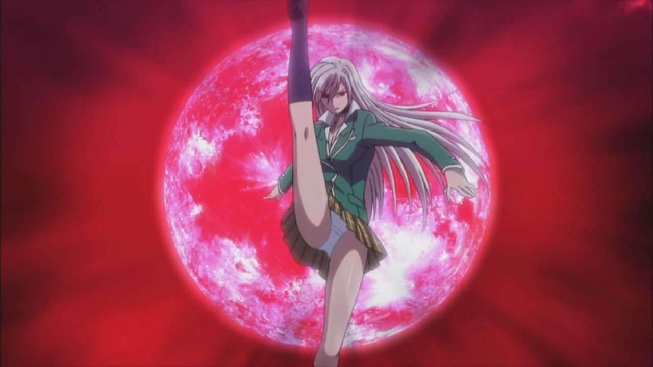 Anyway, I’m quite looking forward to this season as it reminds me of everything I liked about the first one (did I mention the fun?), plus we’re treated to a revamped Moka transformation this time around. Since we’re probably going to see this tranformation a lot down the road, I guess adding in the scene with Moka’s clothes ripping away doesn’t hurt. Production-wise, the quality is on par with the first season and looks good, which is something I’d like to see more of from GONZO rather than a lot of crappy CG. While it’s just a stylistic touch on Rosario + Vampire, I really like how the vibrant colors POP OUT at you too. The music is always a nice touch as well, with the opening of this episode featuring the “Toki no Kawa wo Koete” character song sung by the four main girls. After having listened to it a fair bit a while back, hearing it here really helped me get into the Rosario swing of things again.