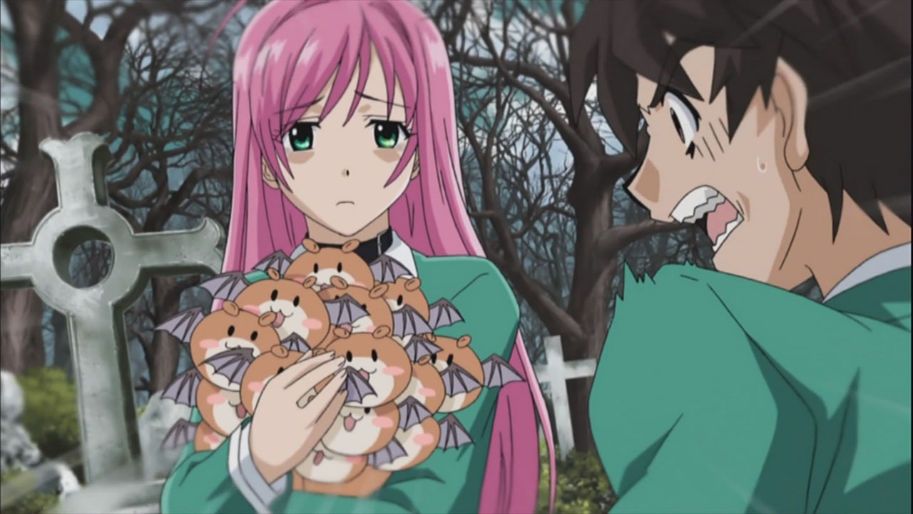 And I hope to God the reason he isn’t a vampire anymore is because Moka keeps sucking his blood. I really would like to see some Tsukune-Vampire kicking ass.
