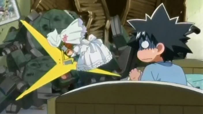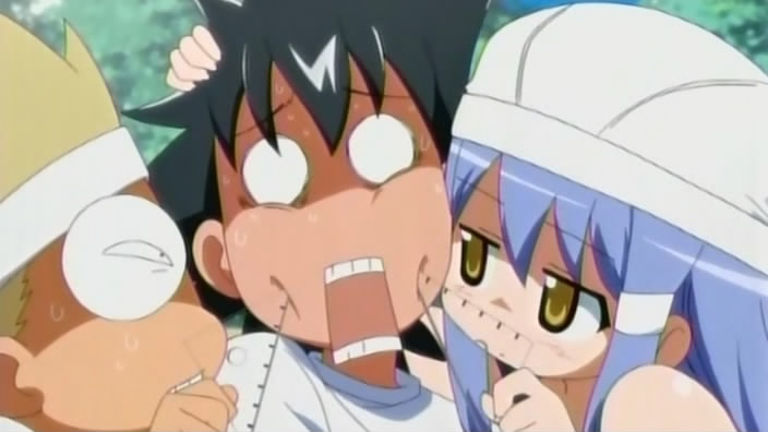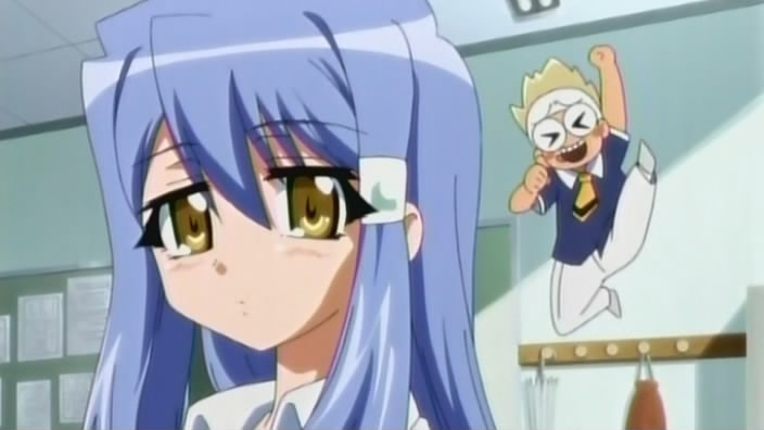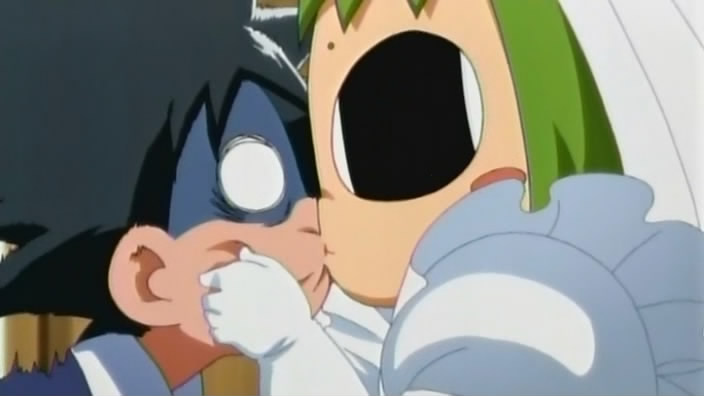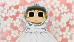 In what appears to be a romance comedy, there’s a bit of fan-service floating about (primarily from M.M.’s undergarments), but the series is otherwise pretty “clean” thus far. Judging from the opening though, it looks like we’re in store for some fan-service (at least of the robot kind) alongside a lot of male protagonist abuse. As such, there doesn’t appear to be a lot of depth to this series, so I view it more along the lines of Kamen no Maid Guy or a much less lewd version of Kanokon. Surprisingly though, I find myself inexplicably interested in this series after watching the cast interview and Kemeko fight scene with the giant rice cooker—the latter of which was an epic display of martial arts that was animated really nicely. Saitou Chiwa does a good job in bringing out the serious personality of Kemeko in those situations, and is able to convey a sillier side when needed. Production quality doesn’t seem very high from Hal Film Maker on this one — the studio that’s best known for its work on the ARIA franchise — but I find myself wanting to watch more of this just for the comedy surrounding the extremely cute M.M. I’m not a huge fan of series that involve an over-abused male lead, but I did enjoy Nagasarete Airantou and Seto no Hanayome a fair bit, so I’m willing to give Kemeko Deluxe! the benefit of the doubt in that regard.