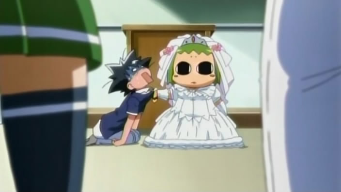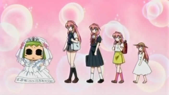 From Hal Film Maker and Genshiken director Mizushima Tsutomu comes an outrageous new adaptation starring a beautiful pink-haired girl who defies physical boundaries by riding in a super small robot. Named Kemeko, the super-deformed, green-haired robot has a spunky personality of its own and packs a wallop whether it be from gatling guns or hand-to-hand combat. In what seems to be an alternate take on To LOVE-Ru, the story involves M.M.‘s sudden return to Kobayashi Sanpeita‘s life after a ten year absence, intent on becoming his bride like she promised when they were kids. However, there are now unknown forces after Sanpeita’s life, so M.M. decides to protect him with Kemeko. While certainly different in its approach, the whole pink-haired alien (?) bride bit sure reminds me a lot of Lala Satalin Deviluke, which is befitting given how Tomatsu Haruka now plays M.M.