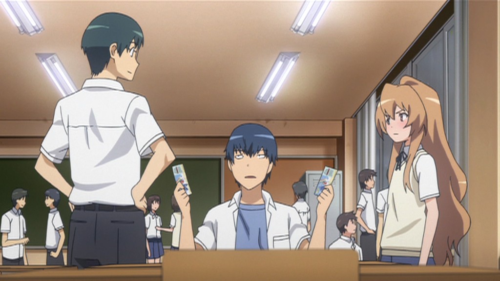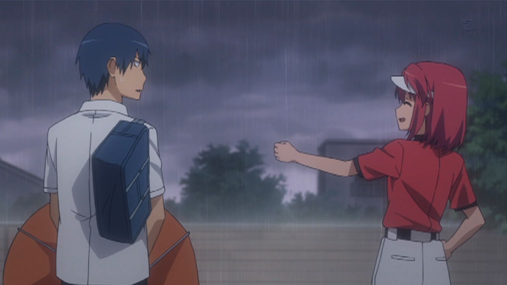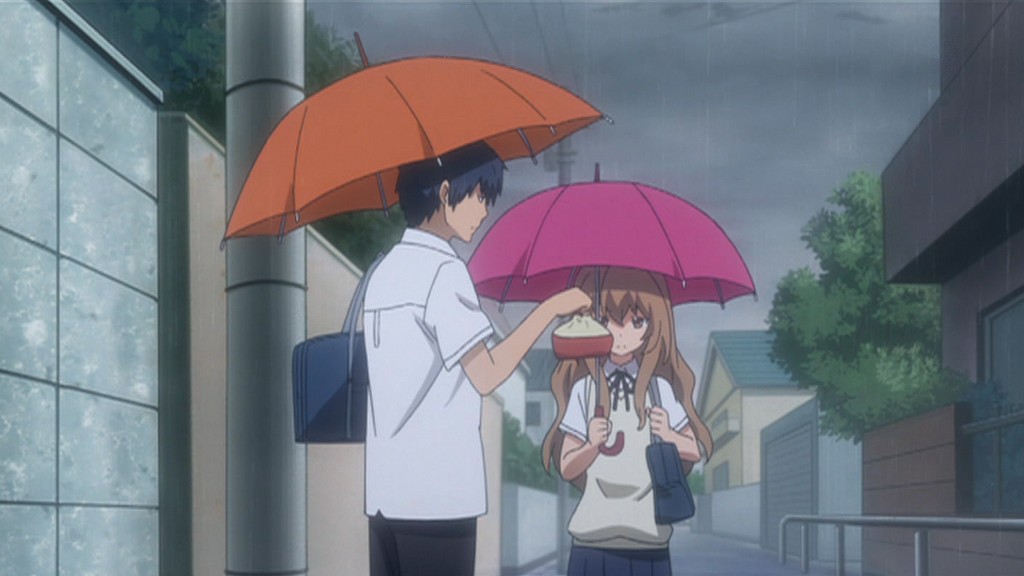 Really good episode. It definately was the best one so far given how much emotion was expressed between the characters. Every single girl interest expressed some type of feeling for Ryuuji. I think Minori doesn’t quite understand her emotions yet and probably doesn’t really care. Just yet. Taiga is finally beginning to realize how she feels and Ryuuji just cares for everyone. I don’t think he has that romantic feeling for Taiga or hasn’t realized it.