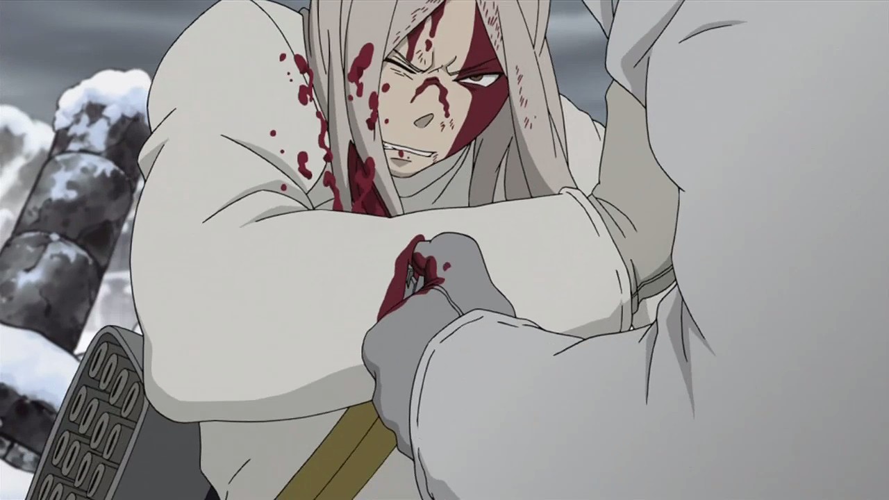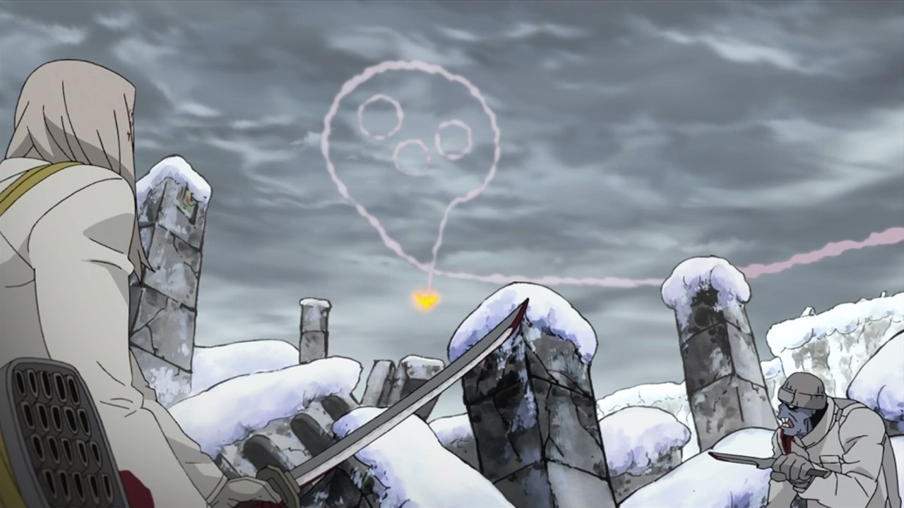 Overall, there was more great action this week, though perhaps not quite as good as last week. I was a little disappointed that Mifune and Sid didn’t get to continue their battle for longer, but it was interesting to see that the only way Mifune was injured was after getting hit by a trap. Mifune’s not the kind of character who would die though unless Angela were around, so it’s not too surprising that the battle ended inconclusively. The fight meanwhile inside the magnetic field was less interesting because Maka and company were so ineffective against Mosquito and seemed to spend all their time getting beat up. I’m curious though to see what happens with Soul taking a risk – and perhaps endangering everyone – by doing this piano thing.