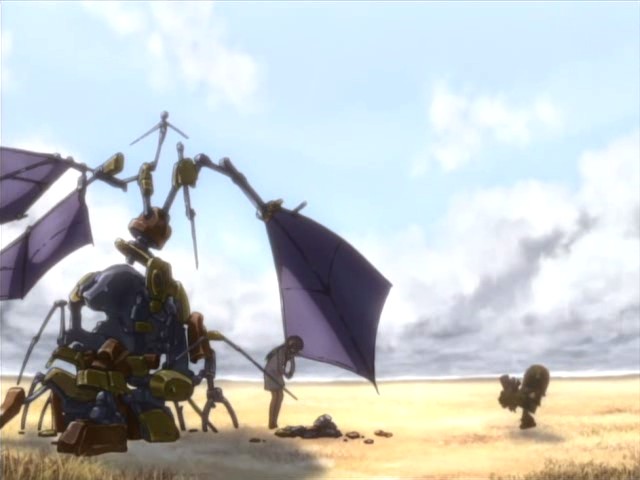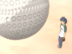 In the illusionary world, the robot is gathering junk while the girl puts together their flying machine. With the sky getting cloudier, the robot knows that they have to take flight before winter arrives or else the girl won’t be able to move. The robot doesn’t understand that very well, but he realizes that it can’t be helped. Back in the real world, Tomoya dreams of everyone saying goodbye at the graduation ceremony. When he wakes up, he instinctively goes to get his uniform before he remembers that he’s already graduated. Since he doesn’t have a job yet, Akio and Sanae offer him work at the bakery, and Sanae starts calling him by his given name because they’re like family. As Tomoya learns the in and outs of the bakery, Nagisa gets well enough to go to school again. Her new class is full of people she doesn’t know, but she’s optimistic about making friends. With the challenges facing Nagisa combined with being around her parents all the time, Tomoya starts to understand that Akio and Sanae are always making Nagisa laugh with their antics.