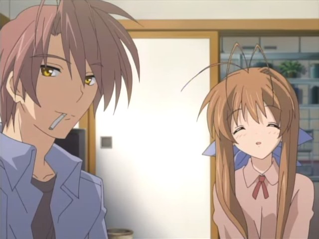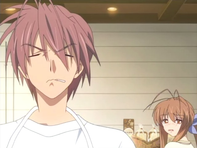 @gundam maniac: that’s where you got it wrong. It’s never about which pairring that tomoya ends up with, but the situations that he must face in order for him to grow up, and to protect his happiness which is his family. That’s what Clannad is about.
