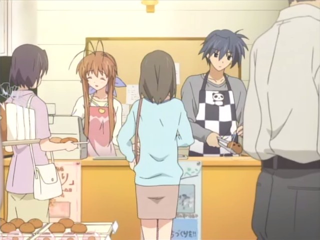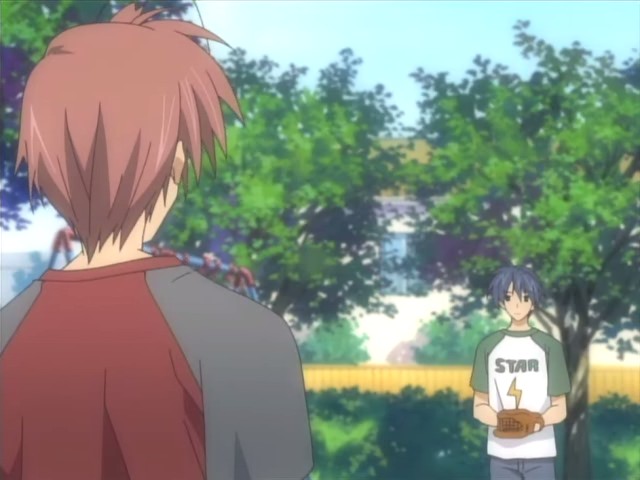 Somehow the scene in the van where Tomoya sees a family and he cranes his neck to see them as the van passes by was a bit touching. It shows how much he desires to have one of his own with Nagisa.