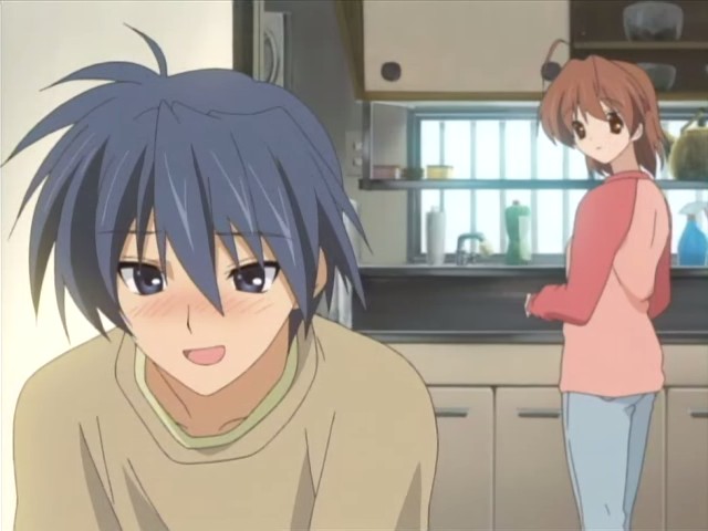 Well, it’s clear that nothing’s going to come easy for Tomoya or Nagisa, which I guess is as good a reflection on real life as you’d expect. The two make a good couple, but they’re a ways off from having the kind of relationship Akio and Sanae have. I wouldn’t be surprised if Tomoya has to ask Akio for help or advice at least once, if not more. It’s interesting to see how what could have been simply a happily-ever-after doesn’t always turn out that way immediately. I’m glad though that Tomoya didn’t wallow around for too long lamenting his own situation before he finally took action – in other words, it looks like they aren’t wasting time with unecessary things in the story.