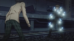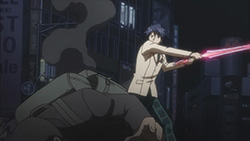 After learning that Shogun created him and the Ir2 equation, and that Rimi’s been captured after trying to take care of him, Takumi realizes that he loves Rimi. In the past, Shogun freed Rimi from her world of darkness with a synchronized delusion, so she’s dedicated herself to him and Takumi since then. Back in the present, Takumi tells Shogun how much he hates him for creating him, but decides to find a purpose to his existence. Takumi then unexpectedly summons his Di-Sword, intent on saving Rimi. With the help of Shogun’s advice, Takumi senses out the Porters in the area and destroys their devices, after which Shino appears. Reading her thoughts and projecting them to the large screen, Takumi reveals to everyone how she committed all the New Generation acts — crimes she deemed necessary to awaken Takumi as a Gigalomaniac. Stabbing herself in the neck with a stake, Shino activates the Third Melt, a gigantic 7.8 magnitude earthquake that topples Shibuya.