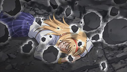 With everything out in the open now about Shogun’s true identity, Rimi’s good-hearted intentions towards Takumi, Takumi’s awakening with the summoning of his Di-Sword, and Hazuki Shino’s (Grim) revelation as the New Generation criminal (mind reading sure is useful), all my questions from last week have been laid to rest. It was mildly unsettling to see how Shino scooped out Doctor Takashina‘s brain while he was still awake, while Shino killing herself to activate the Third Melt (a.k.a. huge earthquake that flattened Shibuya) was reminiscent to how Aureolus Izzard activated his alchemy. There was no real explanation as to what the deal is with Nanami’s right hand, but from what I’ve heard, this is a more prominent part of the visual novel. For the anime adaptation, I get the feeling that they’re not going to focus on this too much more though. If I were to nitpick about something, it would be how Yua and Nanami survived being squashed by tonnes of debris. Other than that, I have to say that it doesn’t come as a huge surprise that Sena didn’t really hate her father and merely used him as a scapegoat for what happened to her mother and younger sister, but he did leave a good last impression on her by sacrificing himself to protect her.