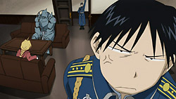the animation somewhat changed from the “natural” look in the First series to the “sharper” look of Arakawa’s drawings. I am much more accustomed to seeing the “calm” rather than the “scowling” Ed. the looks of Alphonse , Roy, Riza, and the others didn’t change at all, only a bit.