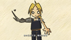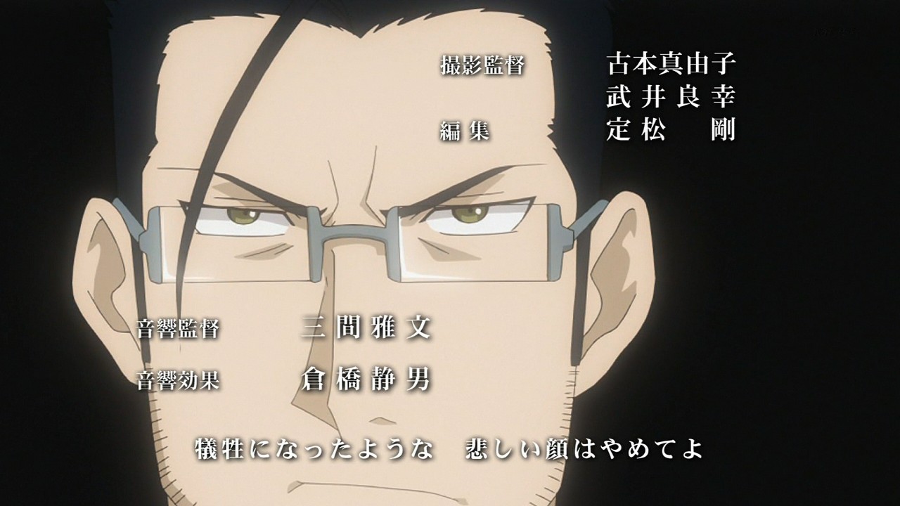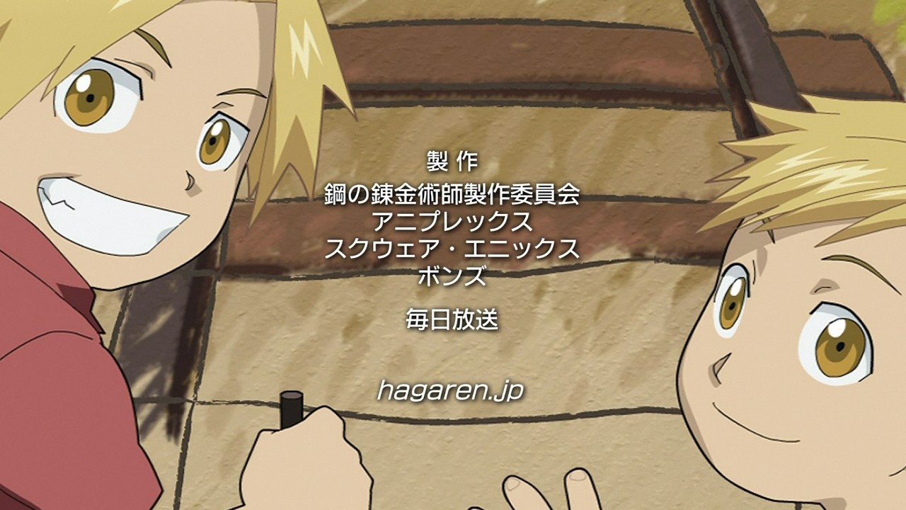 Oh and on a side note, what was with that really cheesy sounding English announcer saying “Fullmetal Alchemist” during the eyecatches?