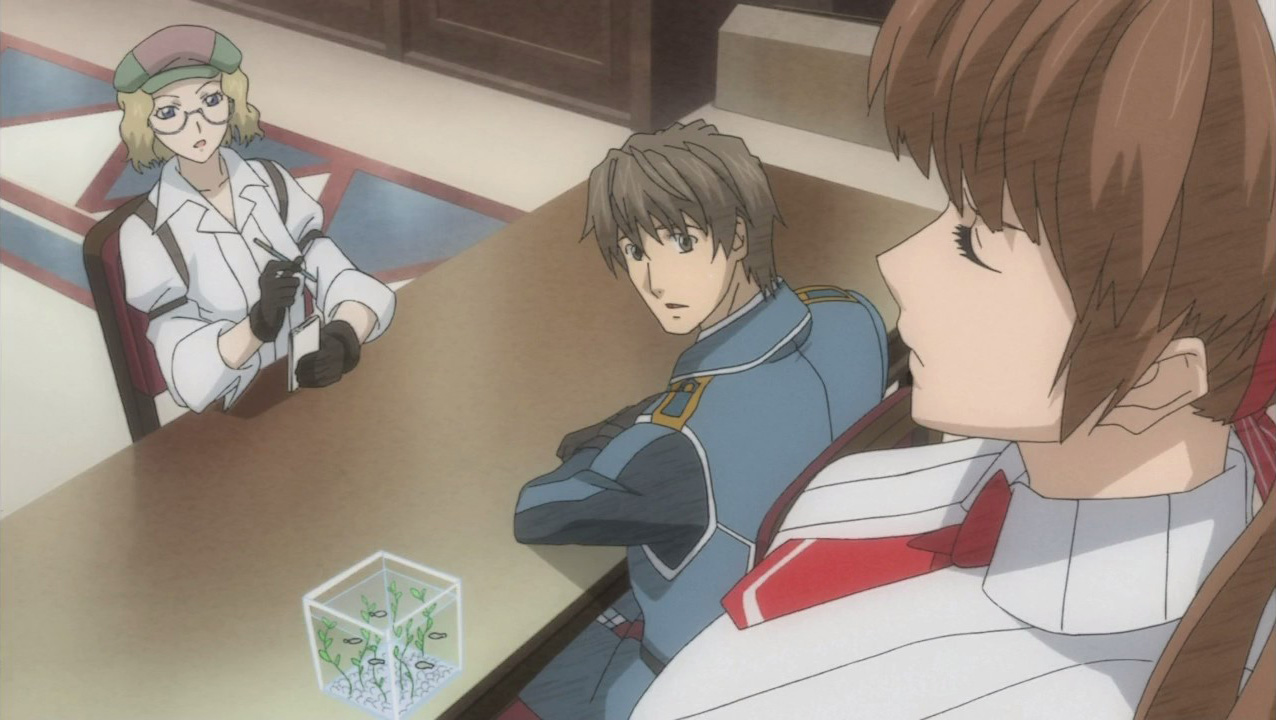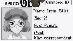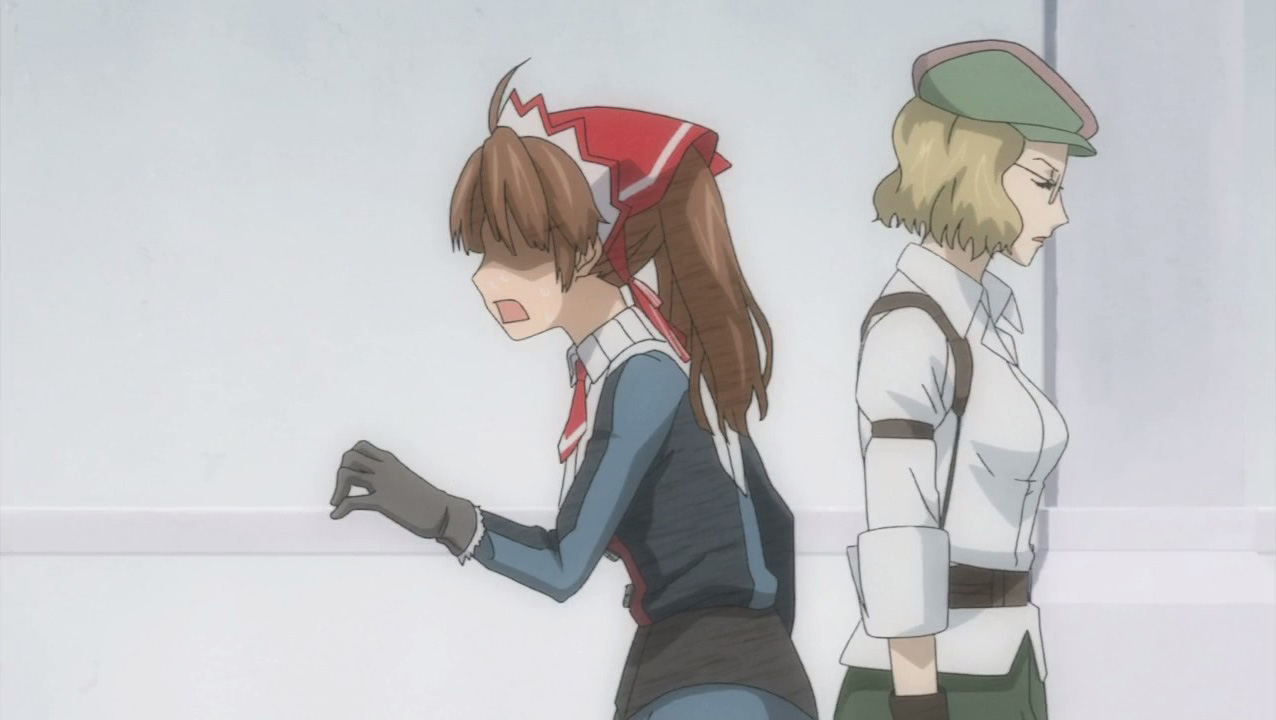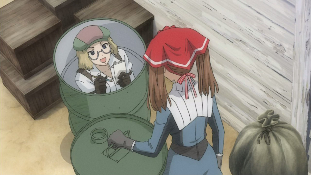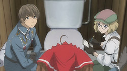When Radio GBS war correspondent Irene Ellet shows up to do a story on Welkin and Squad 7, Alicia tries to get in her way at every turn. Alicia sees Welkin as eccentric and worries what will happen to them and to the reputation of the militia if people find out. She thus sticks close to him to make sure he doesn’t say anything unnecessary and to thwart Irene. Alicia isn’t able to keep Irene away from the rest of the squad, but fortunately for Alicia, Irene isn’t able to learn anything useful about Welkin from the others. Largo, for one, wants to talk about vegetables whereas Rosie wants to show off her singing ability. Irene doesn’t let this discourage her though and decides to pursue Welkin again, but she’s foiled every time by Alicia. Irene finally gets her break when she ambushes Welkin in the restroom after Alicia doesn’t follow him in.