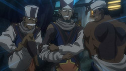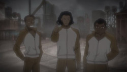 Flora has been chasing after Dan and company, and she finally catches up with them in a desert town. She nearly gets run over by some Bigfoots though, so Haruka takes her in. Dan, Sela, and Iceman have been trying to play matches recently, but Iceman keeps ruining things by using his Destroy technique. Regardless, Flora – still under her alias Allan Naismith – wants to join them. While looking for Iceman that night, Flora finds three suspicious men digging on the outskirts of town and is forced to flee when they come after her. Luckily for her, Iceman saves her and recognizes her pursuers as his former teammates who quit basketball and came home. It turns out that they quit because of what Iceman did to them with his Destroy, and they still hold a grudge, so Haruka suggests a Basquash match.