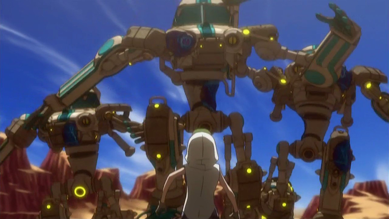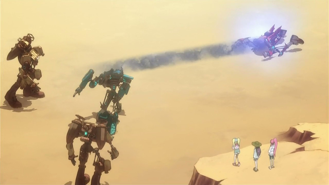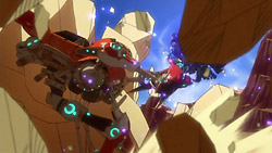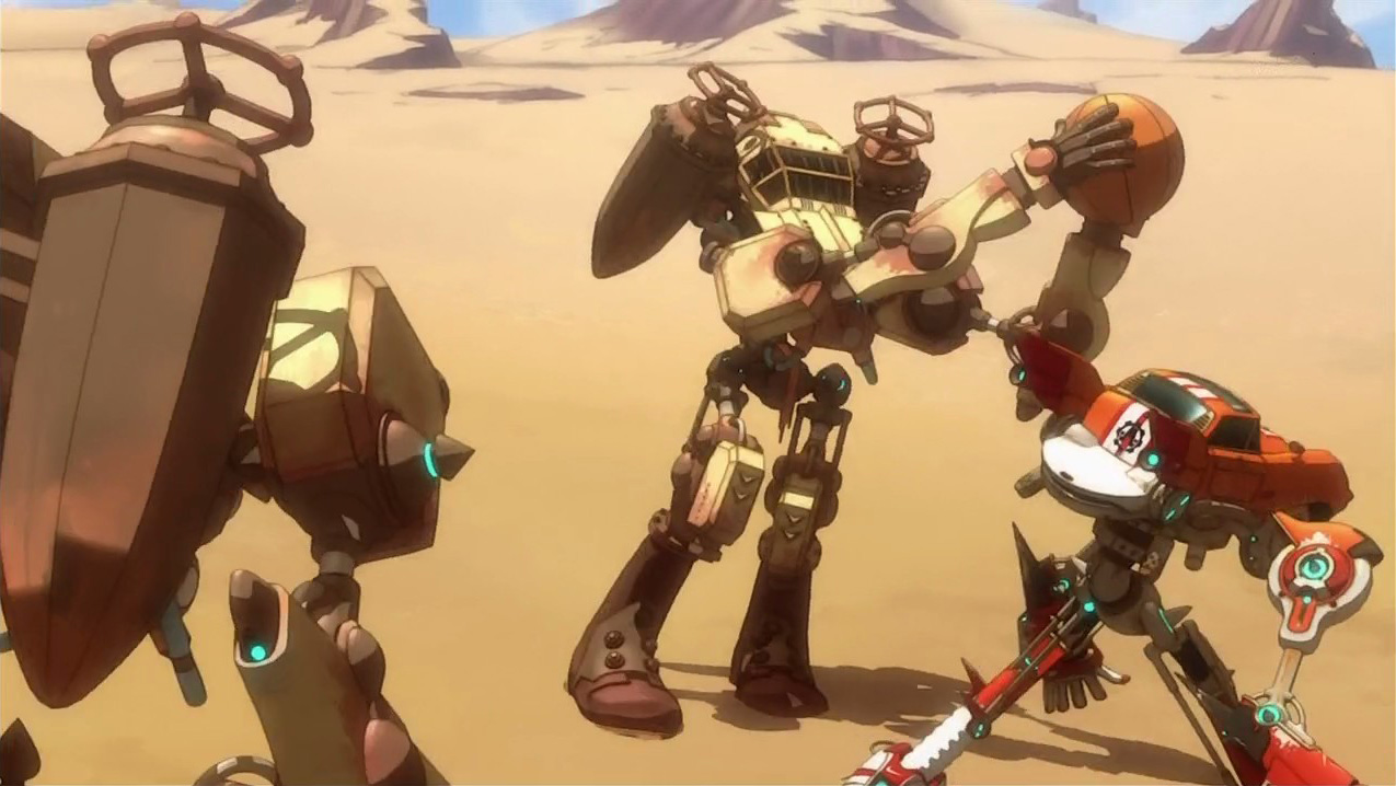 The Eclipse girls also showed up this episode, and while they haven’t done anything noteworthy (yet), I do have to comment on how Nakajima Megumi voices Citron very similarly to how she did Ranka. It’s nostalgic in a way (my friend reminded me that they’re continuing the RankaXAlto stuff here by having Citron be so impressed by Iceman), but I still wish that they had cast her in a mature role or at least something a bit different. Anyway, the preview seems to indicate that they’ll be the focus of next week and that Dan will be getting a kiss from Rouge. Somehow, I’m not at all surprised that they play Basquash as well and have their own custom Bigfoots.