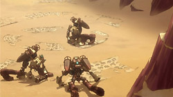 The match starts with Iceman’s former teammates having the advantage because they know the desert and aren’t falling down all over the place like Dan, Sela, and Iceman are. Iceman manages to get the ball, but instead of passing it when he has the chance, he uses his Destroy technique on both Dan and Sela. This causes his former teammate to comment on how he hasn’t changed and is still hurting his friends, making him unqualified to play basketball. Dan gets in the mix to yell at Iceman as well, but this causes Iceman to go into a Destroy rage. Refusing to run away, Dan finally catches one of Iceman’s Destroy balls, and to his surprise, Iceman congratulates him on a nice catch. This makes everyone realize that Iceman has been trying to pass the ball all along.