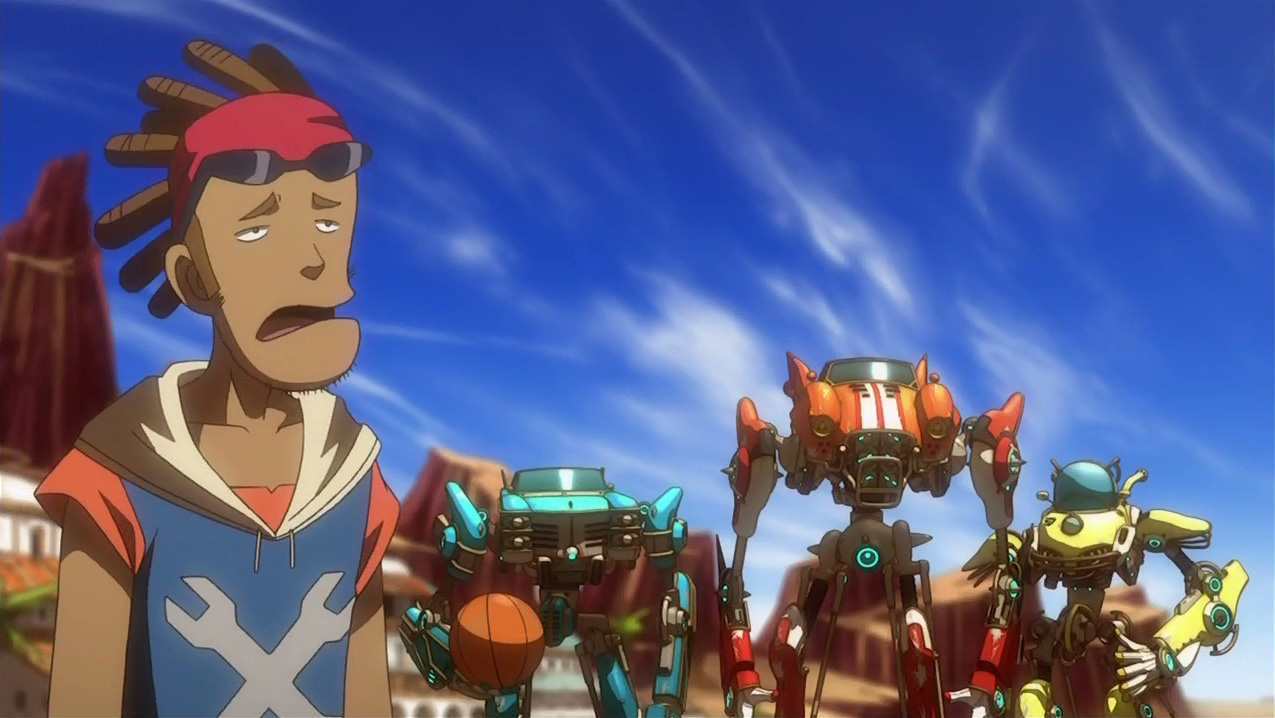 This wasn’t the most impressive episode in the world, but it was certainly better than I thought it’d be. Maybe keeping my expectations low is good for a series like this. I enjoyed the humor (Spanky is amusing as always, and those glasses-lizards were a surprise), but what got me excited was that there appeared to be hints about something deeper in the story with that voice that Flora heard and the circular design on the ground that resembles that on the moon. My wishful thinking makes me wonder if there’s some sort of unspeakable evil at play here, which would in turn mean that James and Slash won’t have to be the final boss characters. How basketball would defeat an unspeakable evil though, I don’t know. Regardless, I find all this very promising plot-wise, and hopefully they’ll continue to develop it.