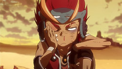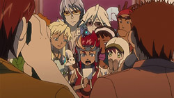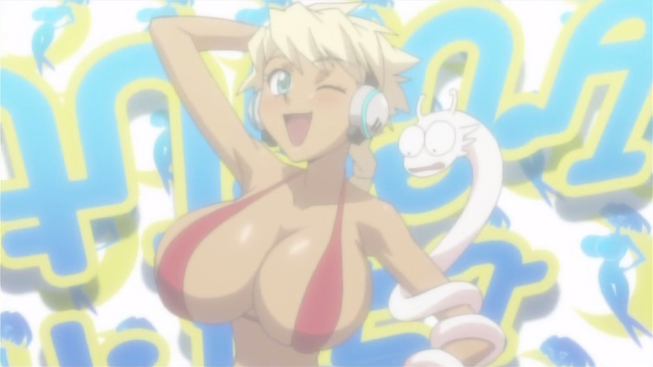 Dan and company arrive at a town where Eclipse has been performing, and by chance, Dan has a run-in with Rouge. She recognizes him and decides to make it look like she’s kissing him in order to get away from the fans chasing her. Dan is left in a daze after she runs off again, but he regains his composure and heads with the rest of the group to the hot springs. The pictures of the kiss soon make their rounds, and Dan gets hounded by fans and reporters about the supposed relationship. What’s more, the Eclipse girls announce that they’re forming a Basquash team, and Dan, Sela, and Iceman are their first opponents. Rouge entices Dan into participating by suggesting that Dan will become famous by defeating them and that he could go the moon.