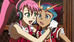 Basquash continues to surprise me by serving up another good episode. It helps, of course, that there was not one, but two insert songs this episode (though admittedly I felt having moon passport and a montage of characters in the middle was kind of gratuitous), and even Kugimiya Rie got in on the singing. The Eclipse girls make for some amusing rivals as well. It’s fun watching Citron fawn over Iceman because of the whole Ranka and Alto parallel, and despite the unoriginality of how it came to be, Rouge is an interesting and rather unexpected love interest for Dan to have. I find it odd though that Sela doesn’t really appear interested in him anymore, and Miyuki doesn’t seem to care too much either given how both seemed like possible matches early on. Maybe no love triangle after all for this series.