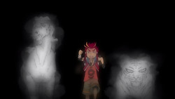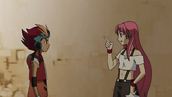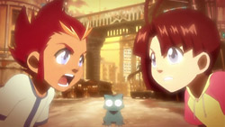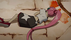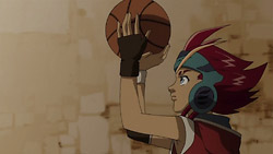 Afterward, Rouge explains that Slash is famous on the moon and is James’ final weapon. She and Dan end up arguing however, and Dan storms off. Having heard of what happened from Flora, Haruka later listens to Dan’s feet and figures out that Dan doesn’t want to remember something. The others suspect that this is about what happened to Coco and that Dan is trying to run away from the past. Dan meanwhile pays a visit to Rouge to return the handkerchief she lent him earlier, but the two are forced to take refuge in a closet when Eclipse’s manager shows up to talk to the girls about the OCB league match. While hiding, Rouge suggests that Dan couldn’t enter a league match even if he wanted to because of the trauma that he’s going through, and she convinces him to play her again in a basketball match. The two face off the next day under the watch of their friends, and Rouge easily outplays Dan and makes basket after basket. Dan struggles because he sees Rouge as Coco, and he starts running around wildly again.