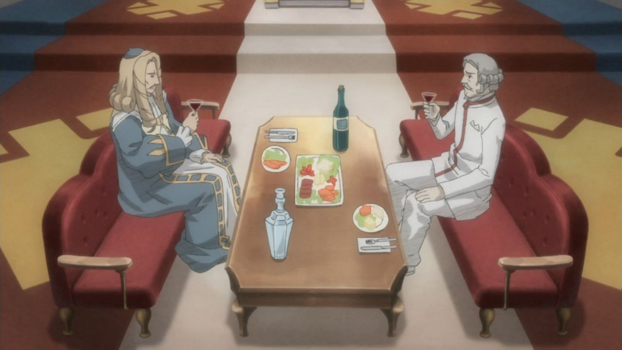 Outside the castle, Karl witnesses Alicia and Cordelia being tied up and taken away on a cart. He rushes to tell Jaeger, and around the same time, Selvaria finds the ragnite crystal that Alicia dropped. Welkin meanwhile returns to Faldio with his sister and Lamar in tow, and when Faldio sees that Alicia isn’t with them, he realizes that something is up. He thus run to where Jaeger and Selvaria are and, after seeing the ragnite, accuses them of doing something to Alicia. Jaeger, however, explains what Karl saw and claims that the Empire wouldn’t have done this because it wouldn’t want the Federation stepping in to protect Gallia. Jaeger instead suspects that there’s someone who wants power so much that he would sell Gallia to the Federation, and Alicia got kidnapped with Cordelia because something unexpected happened. Given all this, Welkin decides to propose that they help each other, much to Faldio’s dismay. If they work together in a mutualistic relationship, Welkin and company would get Cordelia and Alicia back, and Jaeger and the Empire would prevent Gallia from becoming part of the Federation.