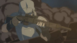 When Gregor finds out that Squad 7 is behind this attack, he orders the Equus out. The train soon falls into the trap set by Zaka and Rosie, but the explosives don’t completely destroy it. Since the main cannon is still operational, Gregor decides on a little gambit: he addresses Squad 7 directly using the train’s speakers and orders them to withdraw. If they don’t, then he’ll fire the cannon towards the escaping Darcsen people. Welkin is conflicted about what to do, and his inability to make a decision prompts Faldio to take control and order an attack. Gregor responds by firing the cannon as promised, and it wipes out many of the Darcsen. Rosie is so pissed off that she charges at the train, and Zaka has to save her before she gets killed. Fortunately for the two of them, the train’s smaller guns don’t get to shoot a second time at them because the turret gets destroyed by a tank shell from Isara and Lamar. Their stolen tank then fires another shot, and this leads to the destruction of the train. In his final moments, Gregor yells for Squad 7 not to forget that it was they who sacrificed innocent people. With the battle now over, Rosie grieves for all the dead and remembers what happened to her own parents.