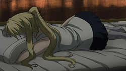 So not only was Haruhi once again looped on Endless Eight, it even had a loop inside the episode. The shot you see above with Haruhi getting up to leave was repeated four times as Kyon tried to figure out what to do to stop her. The very end of the episode then wasted another 30 seconds on a ticking clock (with the camera turning with the second hand) which stopped right before midnight. Next week could be the final Endless Eight episode though, so maybe this'll finally be over.
